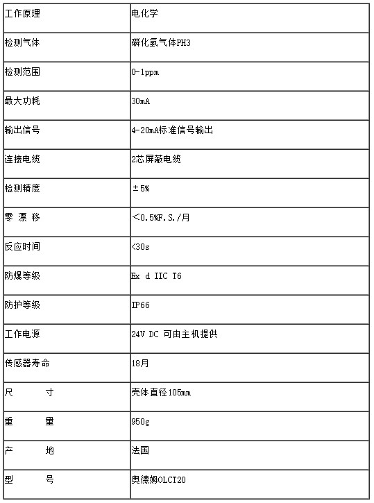 二、磷化氢气体探头功能参数