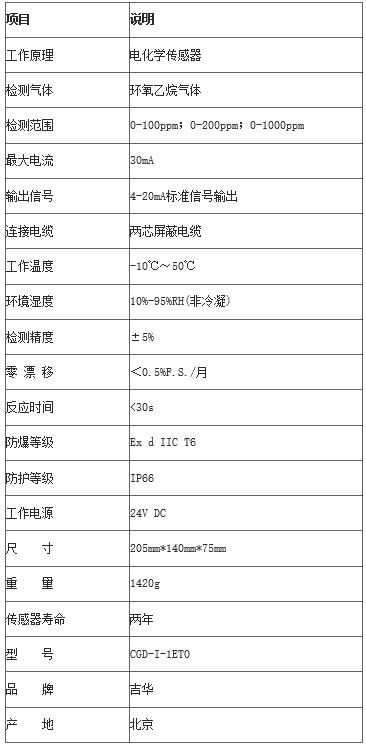 环氧乙烷气体检测仪技术指标:
