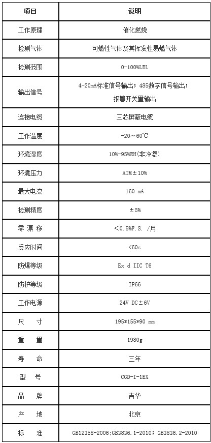 产品采用先进进口催化燃烧传感器,优质金属防爆外壳,