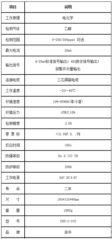 注:1、现场可配带数字显示的固定式乙醇气体探测器或其它型号的乙醇报警探头。