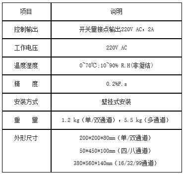每个通道带有两个报警输出;开关量无源触点输出220VAC,2A;