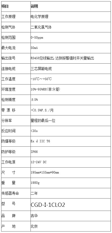 二氧化氯气体检测仪技术指标: