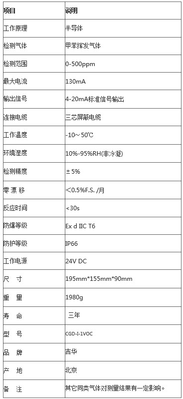 甲苯检测仪技术指标: