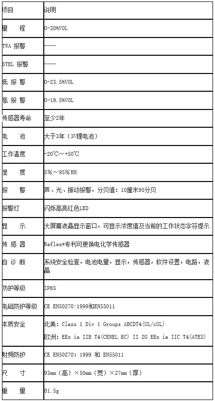 霍尼韦尔 Honeywell Impulse XP氧气气体检测仪技术指标: