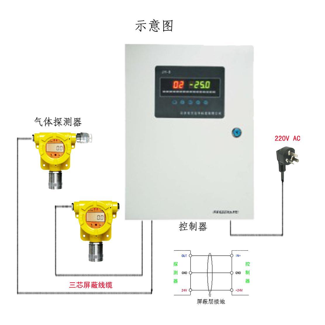 吉华固定式汽油检测仪由汽油探头和报警控制主机两部分组成;根据现场需要,在每个需要检测的地点安装汽油探头,通过电费连接到主机,主机安装在值班室或控制室,为主机供电,显示探头的测量数据,并在达到预设报警点时声光报警或联动相关设备。